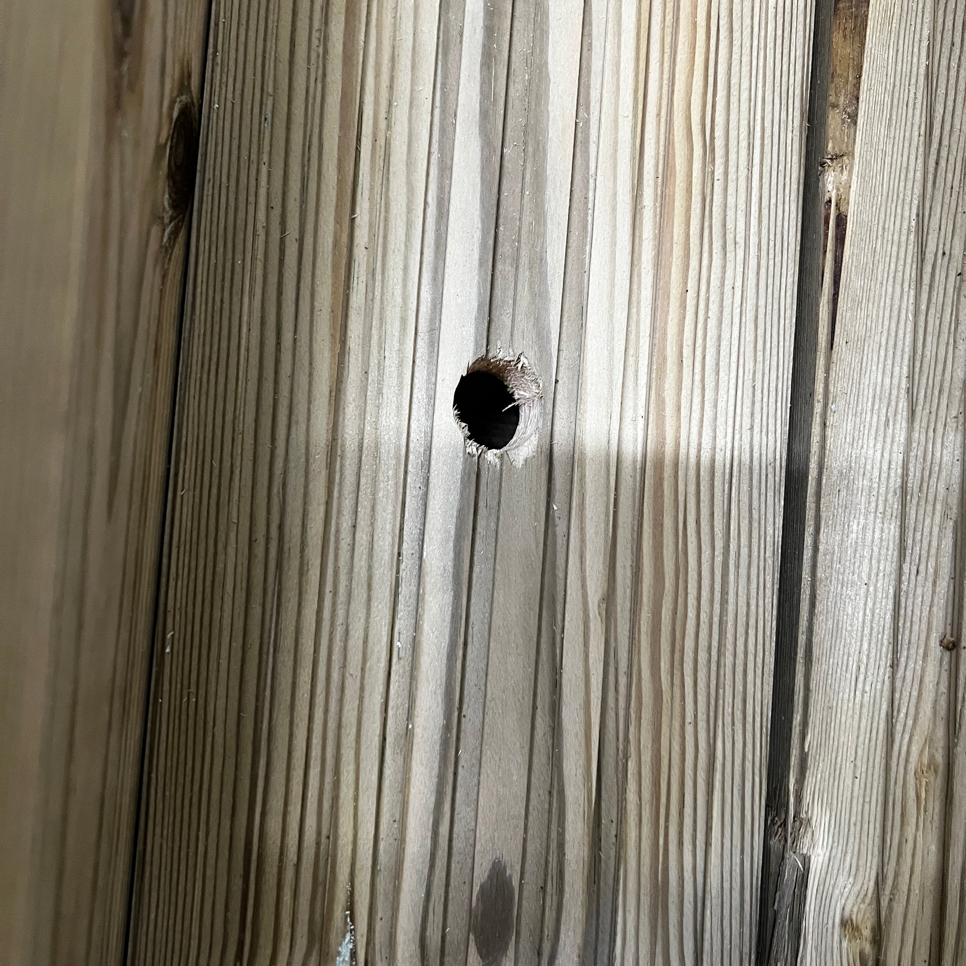 - DECKING SCREWS: are used as these are rust / weather-resistant, plus being green in colour they fit in nicely.