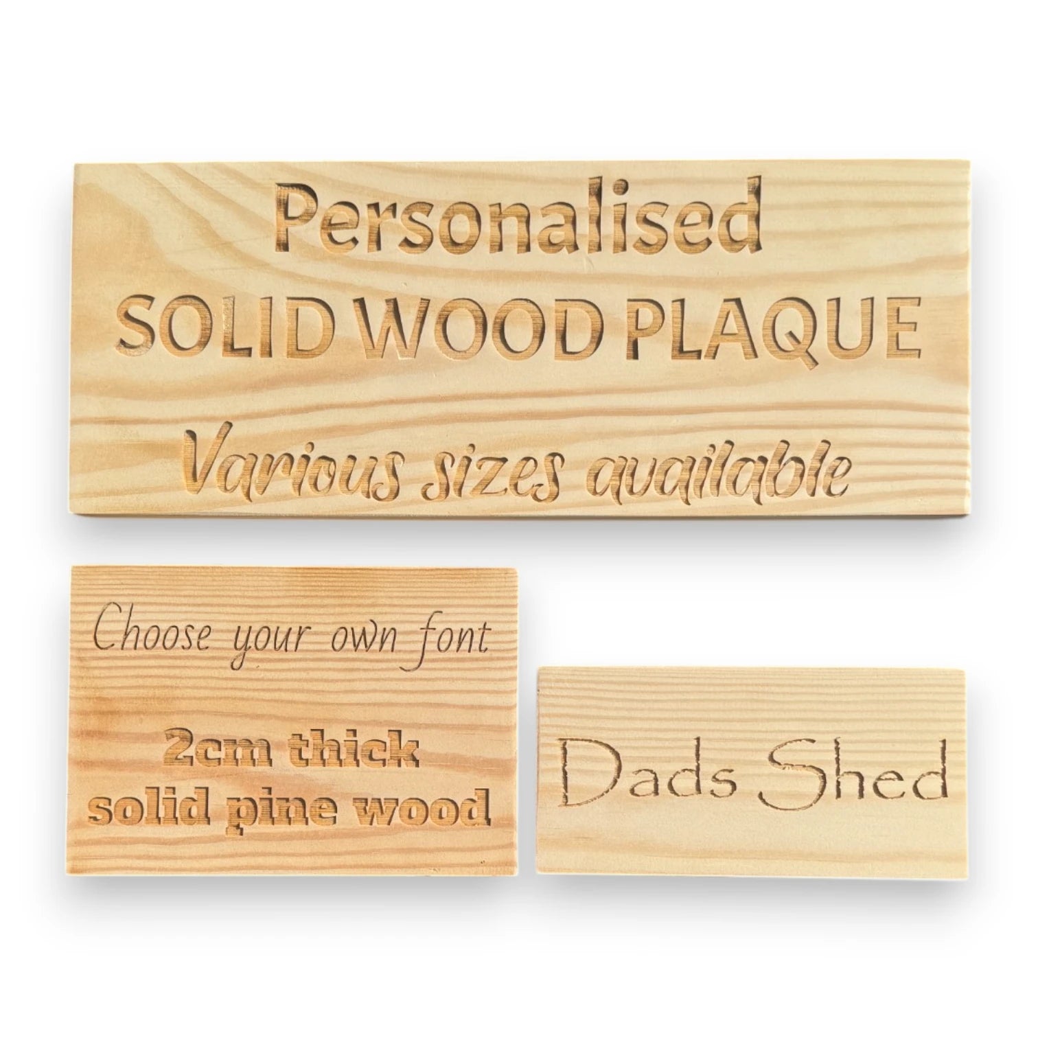 - Size – Select your desired size for the solid pine wood plaque and click "Personalise It" to add your custom text. We will space your text out accordingly.